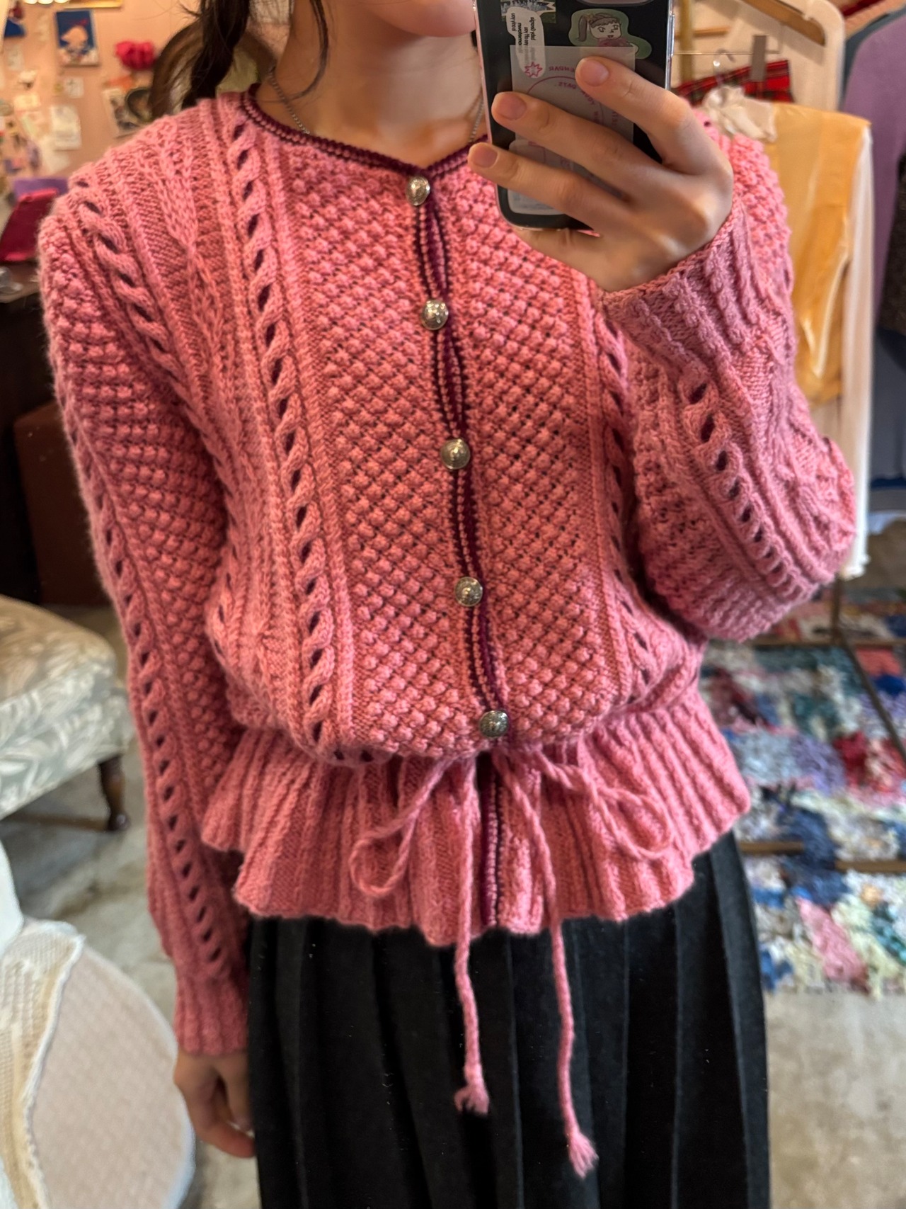 raspberry knit cardigan