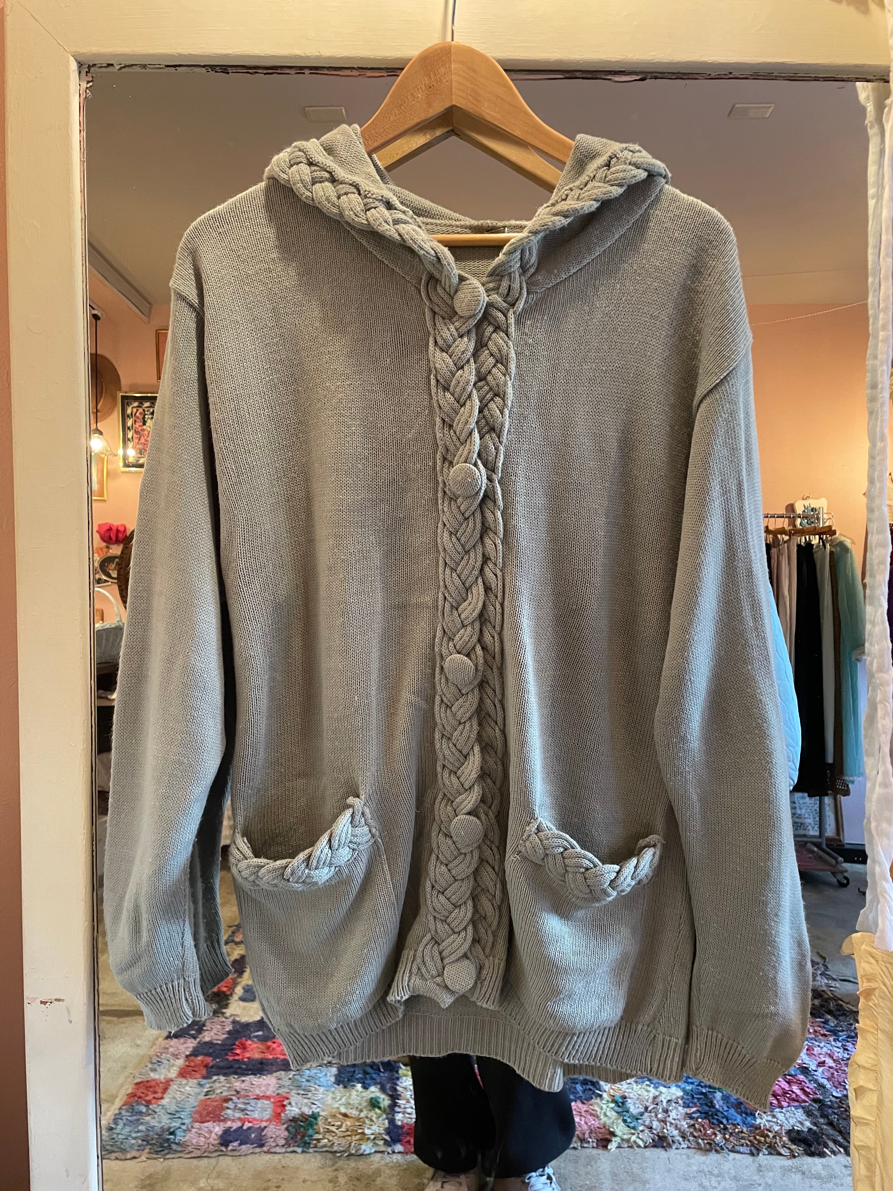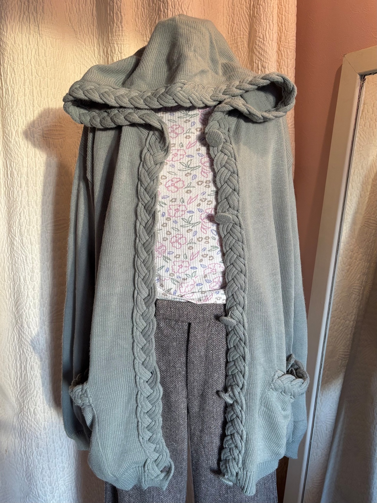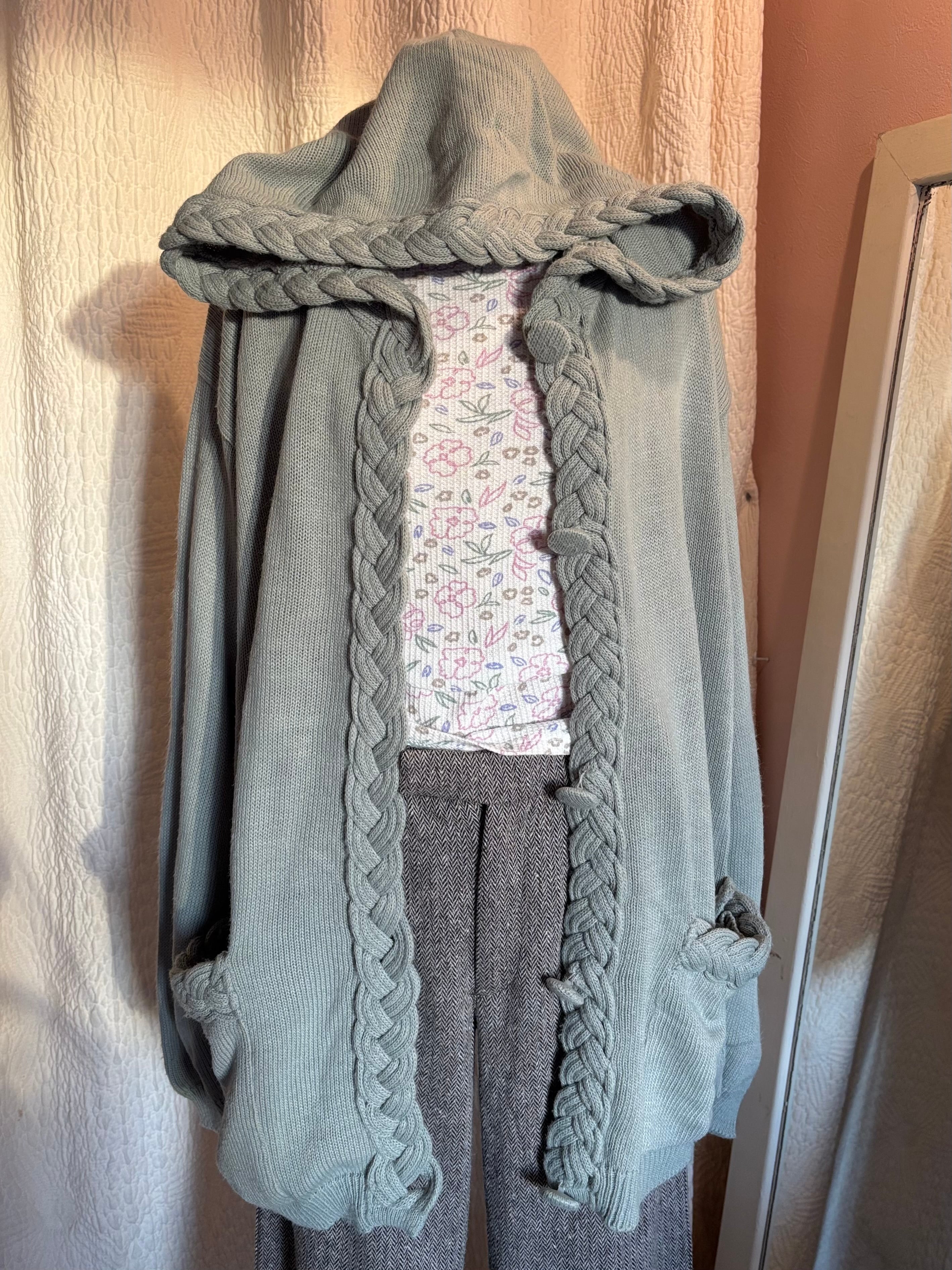 mint green knit hoodie