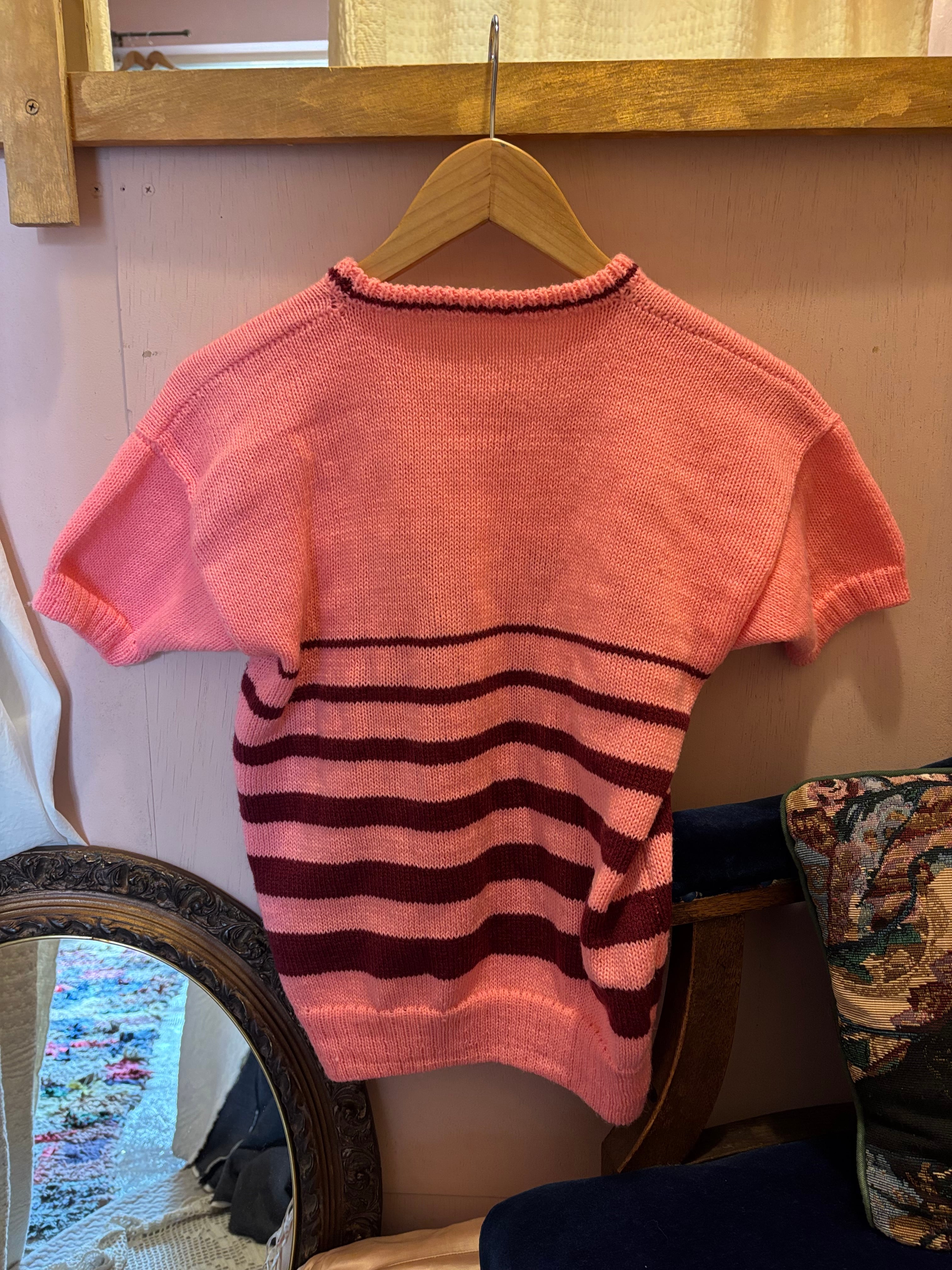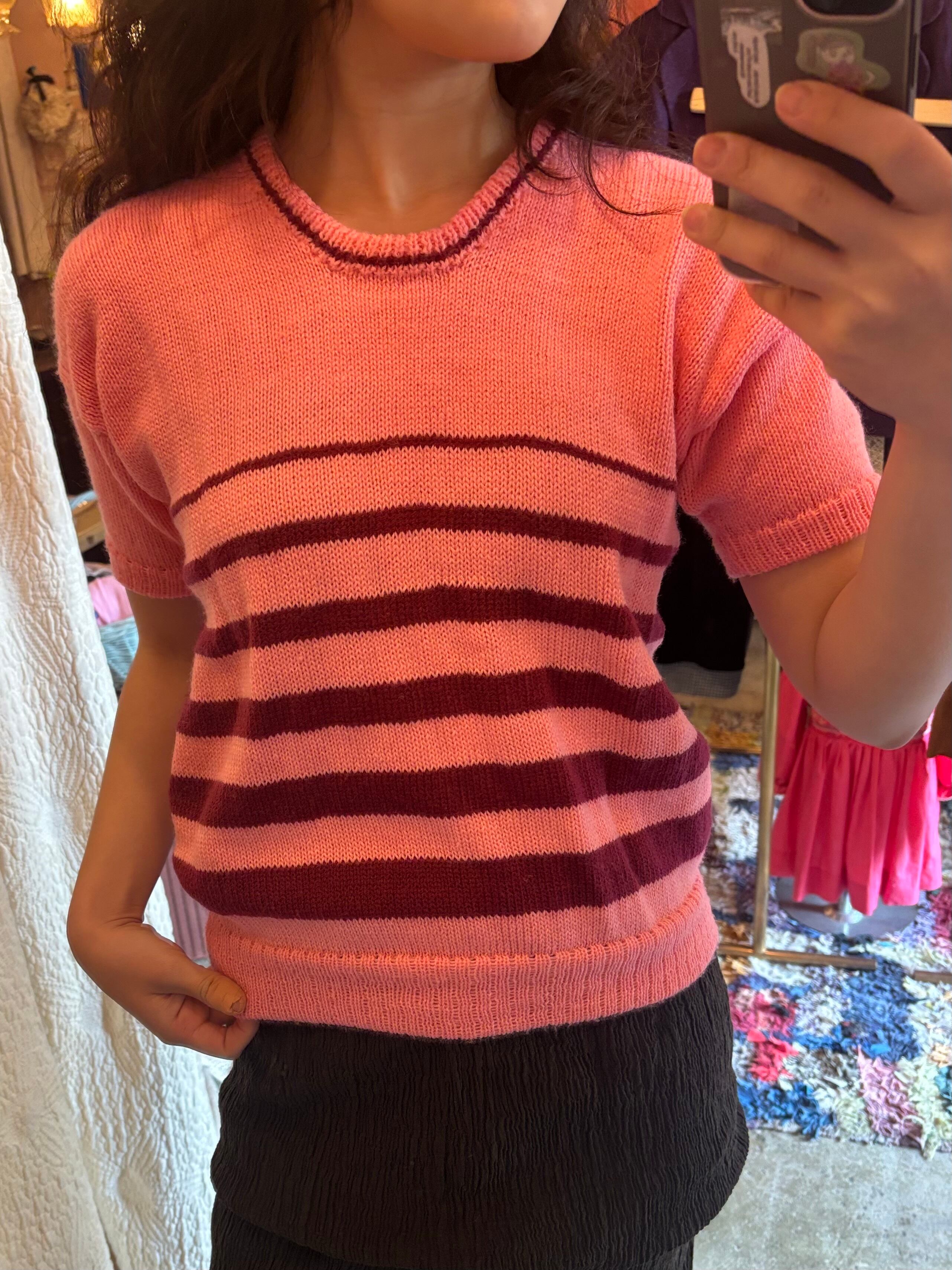 pink border knit tops